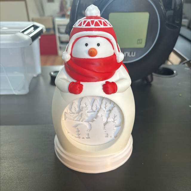 mooi oplichtend landschap in de buik van de sneeuwpop.